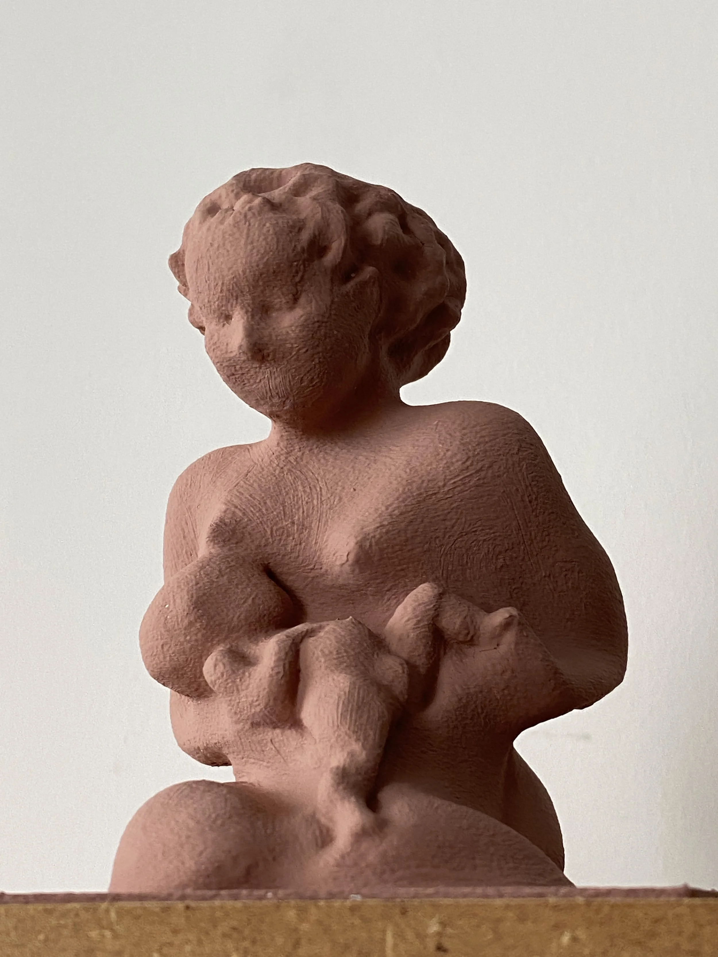 The image of a mother and child is one of the most archetypal and easily understood symbols in any culture—perhaps even a trite one. Yet it remains the most tender and emotionally charged, as it represents the beginning of everything: both the good and the bad. Whether it tells a story of sacrifice or one of maternal egoism, it still breathes with love.The older version from 2021 is clearly about seeing oneself in the offspring, while the small sculpture from 2025 speaks more to a sense of inseparability.Funny enough, the plaster prototypes might look nice on their own, though they differ drastically from the bronze versions.